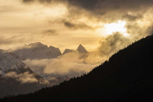Alaska, Chilkat River Valley Mountain sunrise White Modern Wood Framed Art Print with Double Matting by Illg, Cathy and Gordon