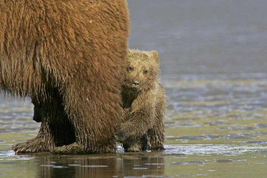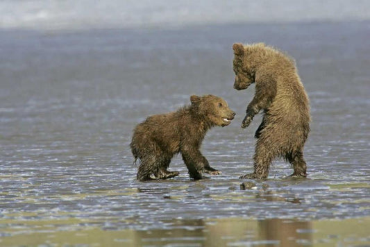 AK, Lake Clark NP Coastal grizzly bear cubs White Modern Wood Framed Art Print with Double Matting by Illg, Cathy and Gordon