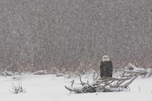 Alaska, Chilkat River Bald eagle in snow storm White Modern Wood Framed Art Print with Double Matting by Illg, Cathy and Gordon