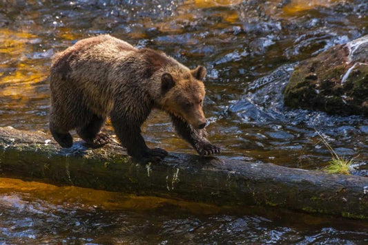AK, Tongass NF Grizzly bear on log hunting White Modern Wood Framed Art Print with Double Matting by Illg, Cathy and Gordon