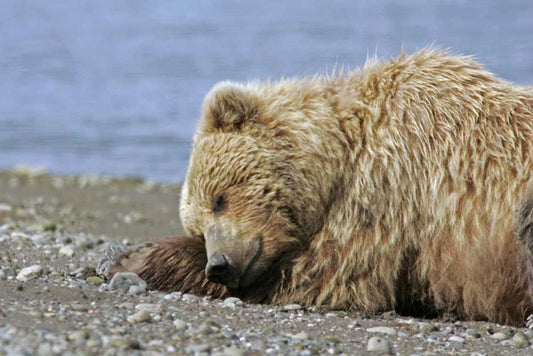 AK, Lake Clark NP Coastal grizzly bear napping White Modern Wood Framed Art Print with Double Matting by Illg, Cathy and Gordon