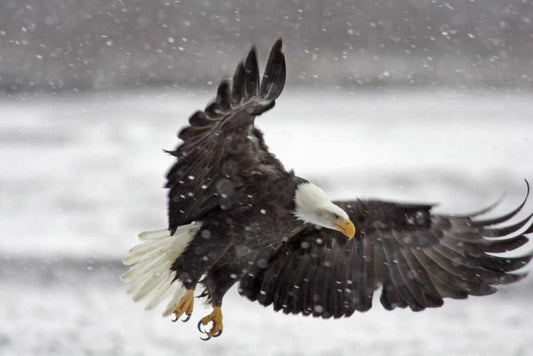 AK, Bald eagle flies in snowstorm White Modern Wood Framed Art Print with Double Matting by Illg, Cathy and Gordon
