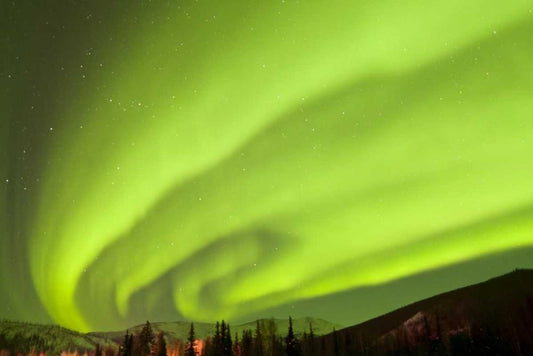 AK, Fairbanks Aurora borealis fill the night sky White Modern Wood Framed Art Print with Double Matting by Illg, Cathy and Gordon