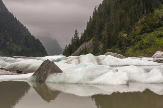 AK, Mendenhall Glacier Sunset reflection White Modern Wood Framed Art Print with Double Matting by Illg, Cathy and Gordon