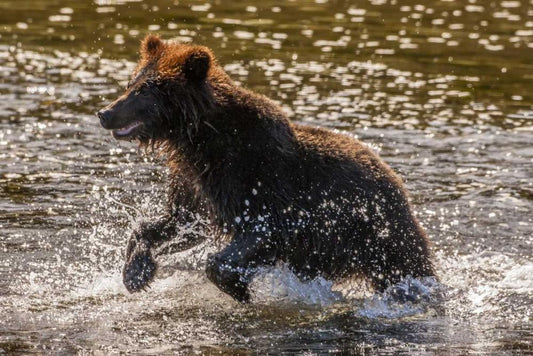 AK, Tongass NF Young grizzly cub hunting fish White Modern Wood Framed Art Print with Double Matting by Illg, Cathy and Gordon