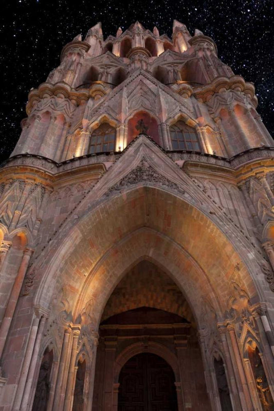 Mexico La Parroquia cathedral at night White Modern Wood Framed Art Print with Double Matting by Paulson, Don