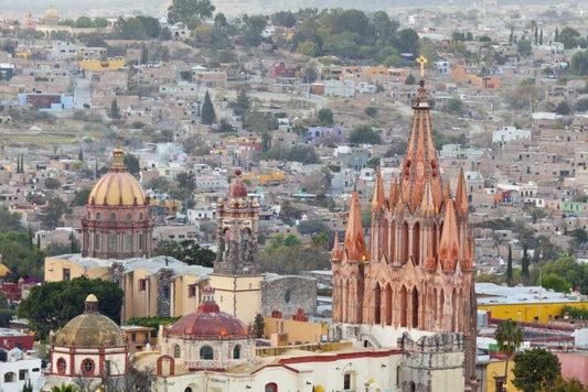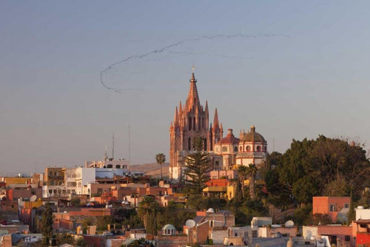 Mexico La Parroquia cathedral in cityscape White Modern Wood Framed Art Print with Double Matting by Paulson, Don