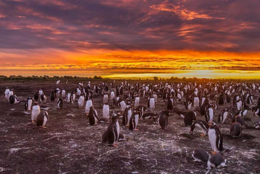 Sea Lion Island Gentoo penguins colony at sunset White Modern Wood Framed Art Print with Double Matting by Illg, Cathy and Gordon