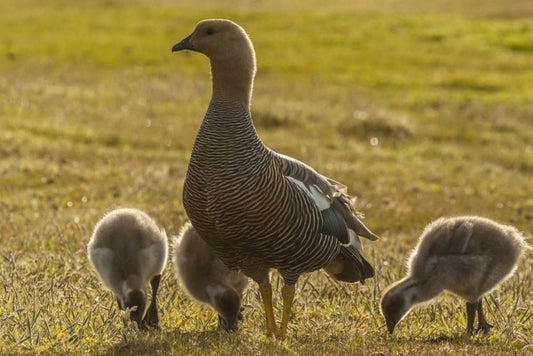 Bleaker Island Upland goose with goslings White Modern Wood Framed Art Print with Double Matting by Illg, Cathy and Gordon
