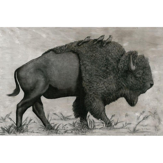 Norwegian Bison Gold Ornate Wood Framed Art Print with Double Matting by Cusson, Marie-Elaine