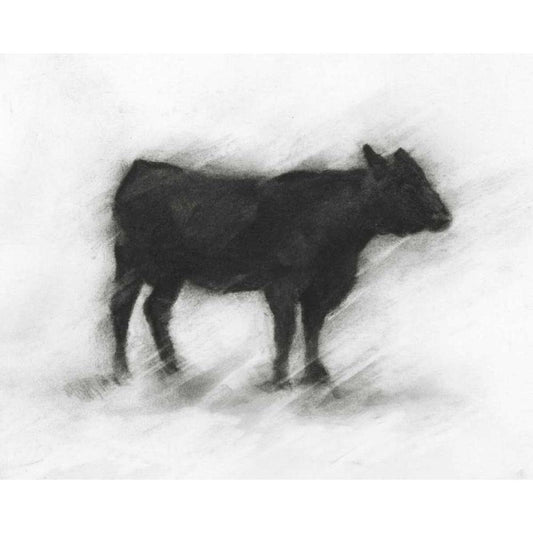 Charcoal Bovine Study II Gold Ornate Wood Framed Art Print with Double Matting by Harper, Ethan