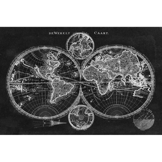 Charcoal World Map Gold Ornate Wood Framed Art Print with Double Matting by Studio W