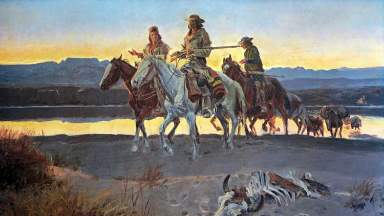 When Guns Were Their Passports White Modern Wood Framed Art Print with Double Matting by Russell, Charles Marion