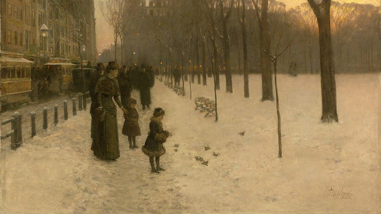 Spring on West 79th Street White Modern Wood Framed Art Print with Double Matting by Hassam, Childe