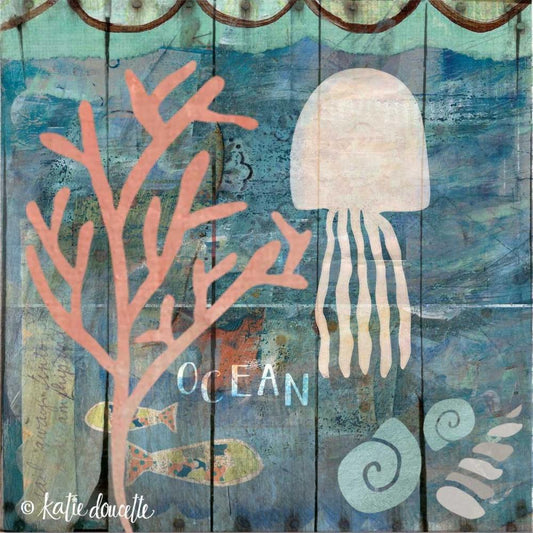 Ocean Jellyfish Black Ornate Wood Framed Art Print with Double Matting by Doucette, Katie