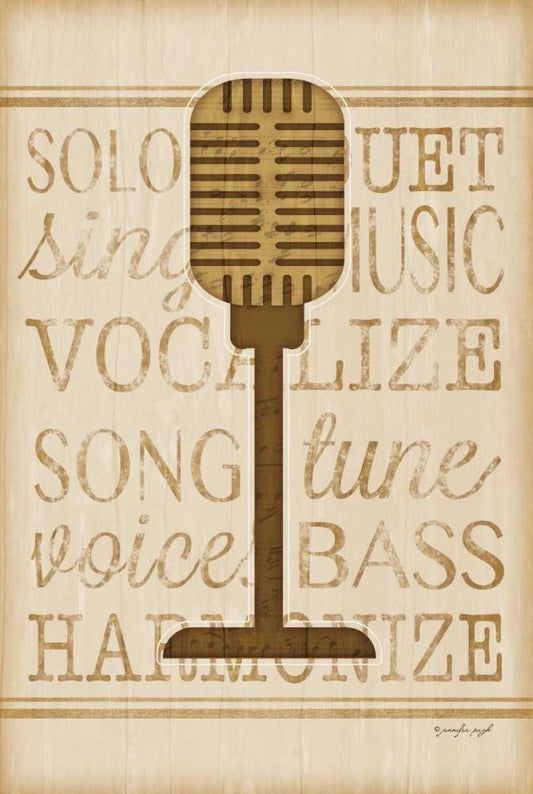 Music Microphone Black Ornate Wood Framed Art Print with Double Matting by Pugh, Jennifer