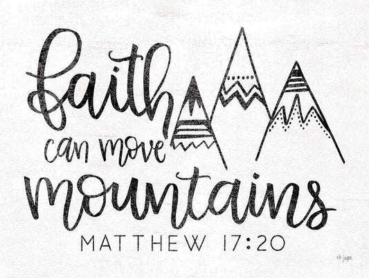 Faith Can Move Mountains White Modern Wood Framed Art Print with Double Matting by Jaxn Blvd.