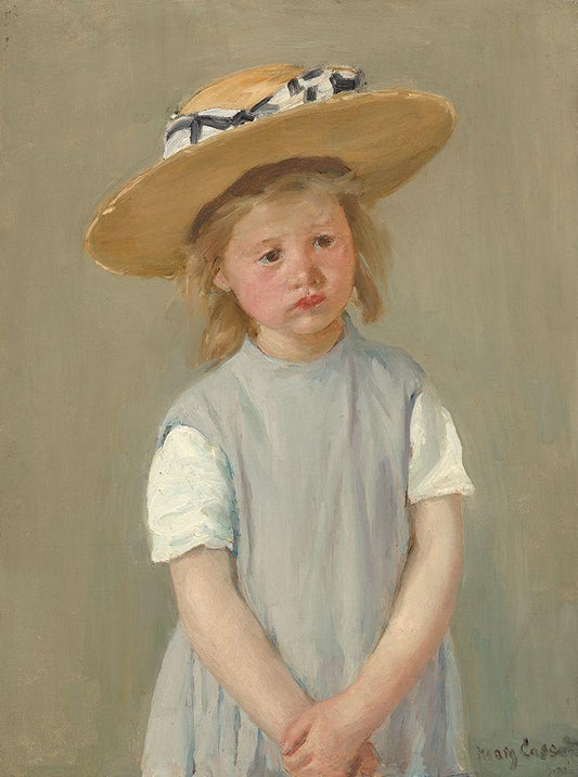 Child With Straw Hat - Version 2 White Modern Wood Framed Art Print with Double Matting by Cassatt, Mary