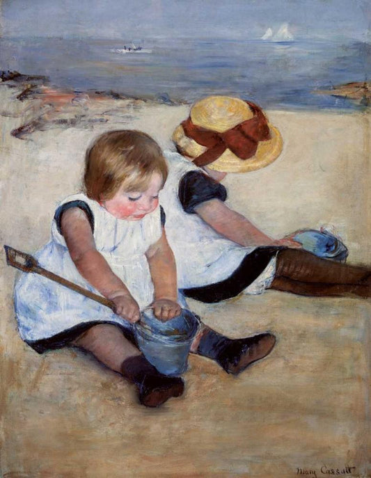 Children Playing On The Beach 1884 White Modern Wood Framed Art Print with Double Matting by Cassatt, Mary