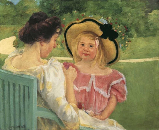 Simone And Her Mother In The Garden 1904 White Modern Wood Framed Art Print with Double Matting by Cassatt, Mary