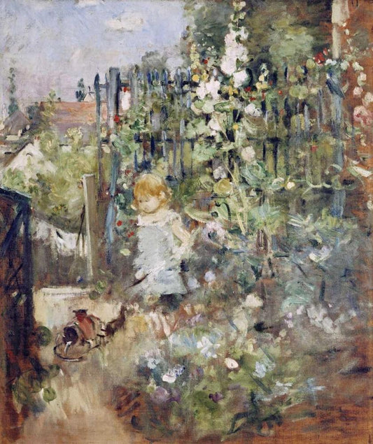 A Child In the Rosebeds White Modern Wood Framed Art Print with Double Matting by Morisot, Berthe