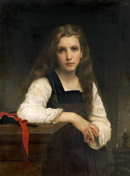 Une Petite Fille White Modern Wood Framed Art Print with Double Matting by Bouguereau, William-Adolphe