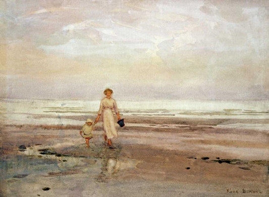 Mother and Child White Modern Wood Framed Art Print with Double Matting by Cassatt, Mary