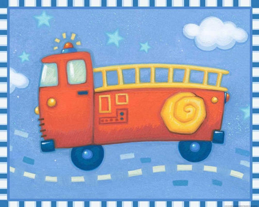 Blue Firetruck White Modern Wood Framed Art Print with Double Matting by Eisner, Viv