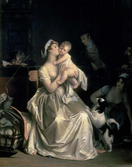 Motherhood, 1805 White Modern Wood Framed Art Print with Double Matting by Gerard, Marguerite