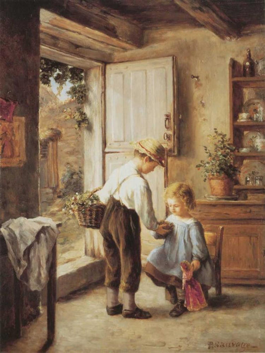 A Present For My Sister White Modern Wood Framed Art Print with Double Matting by Sauvage, Philippe
