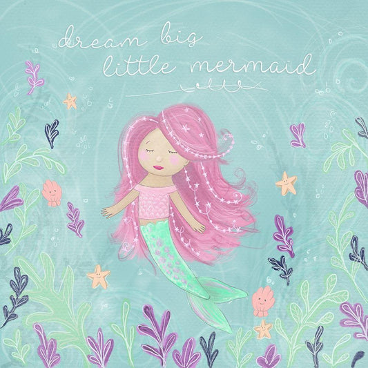 Mermaid and Octopus Navy II White Modern Wood Framed Art Print with Double Matting by Hartworks