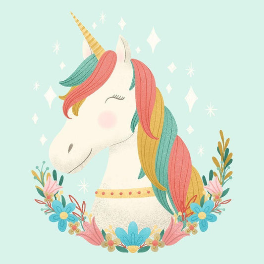 Unicorns and Flowers I White Modern Wood Framed Art Print with Double Matting by Noonday Design