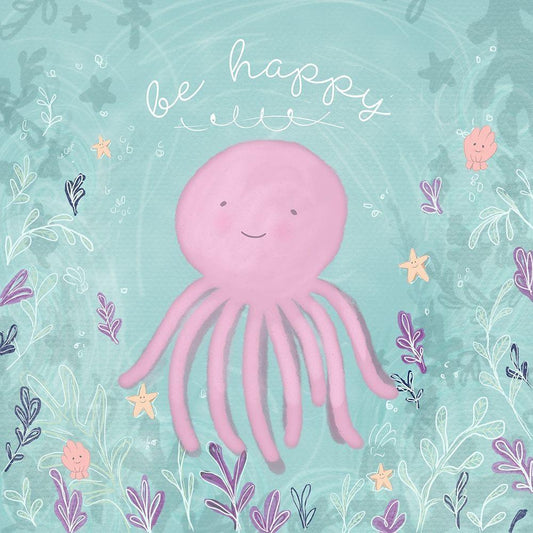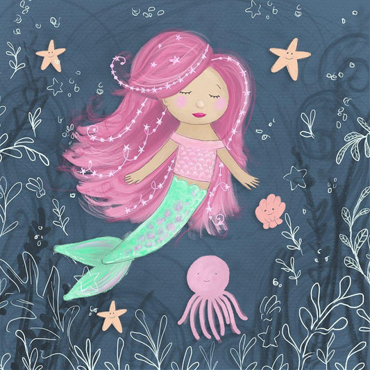 Mermaid and Octopus Navy I White Modern Wood Framed Art Print with Double Matting by Hartworks