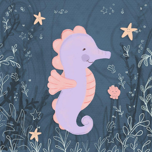 Seahorse and Turtle Blue I White Modern Wood Framed Art Print with Double Matting by Hartworks