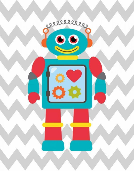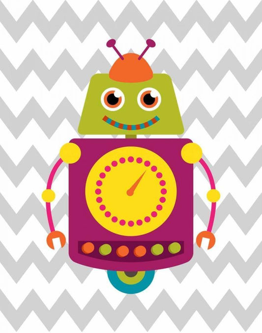 Robot Chevron I White Modern Wood Framed Art Print with Double Matting by Robinson, Tamara