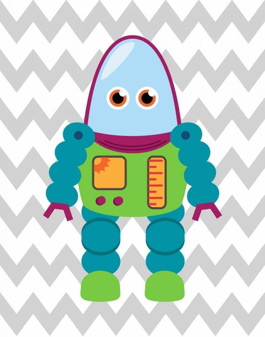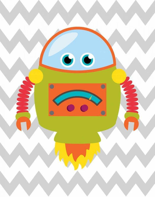Robot Chevron II White Modern Wood Framed Art Print with Double Matting by Robinson, Tamara