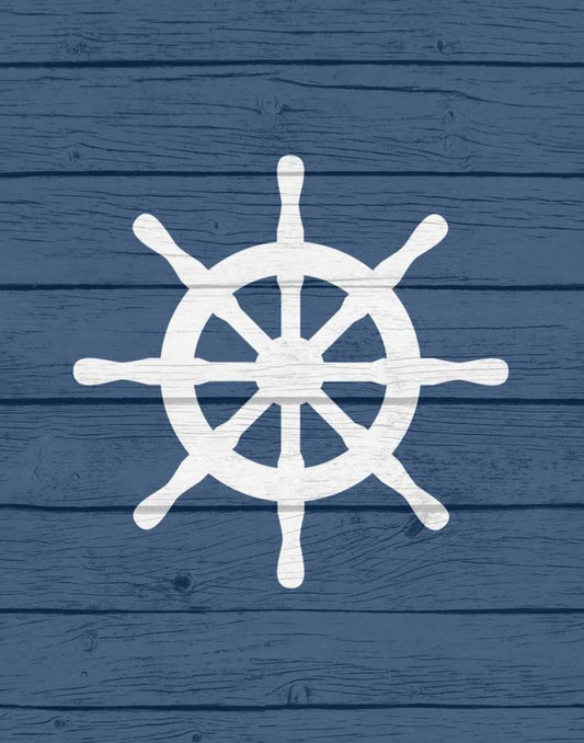 Nautical Wheel White Modern Wood Framed Art Print with Double Matting by Robinson, Tamara
