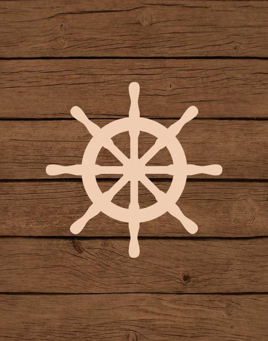 Nautical Wood Wheel White Modern Wood Framed Art Print with Double Matting by Robinson, Tamara