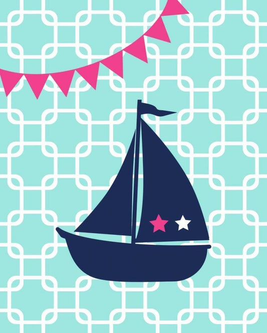 Sailboat Chain II White Modern Wood Framed Art Print with Double Matting by Robinson, Tamara