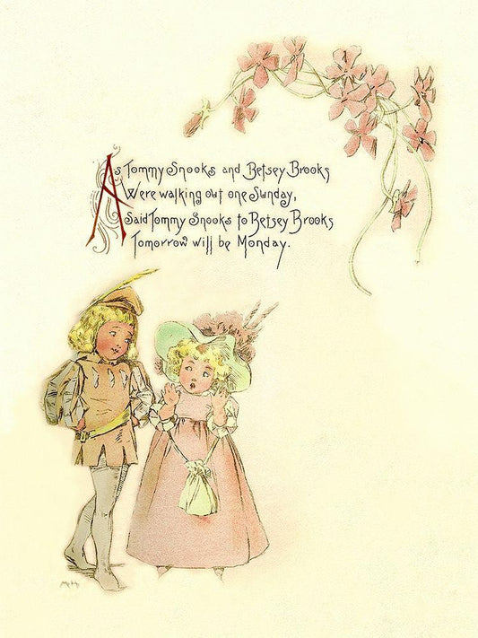 Nursery Rhymes: Tommy Snooks and Betsey Brooks White Modern Wood Framed Art Print with Double Matting by Humphrey, Maud