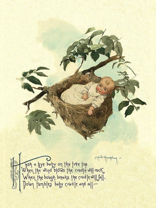 Nursery Rhymes: Hush A Bye Baby White Modern Wood Framed Art Print with Double Matting by Humphrey, Maud