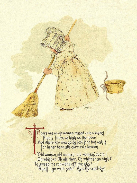 Nursery Rhymes: There Was an Old Woman Tossed Up in a Basket White Modern Wood Framed Art Print with Double Matting by Humphrey, Maud