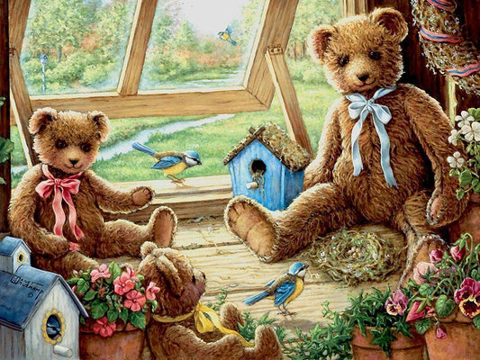 Bears and Roses White Modern Wood Framed Art Print with Double Matting by Kruskamp, Janet