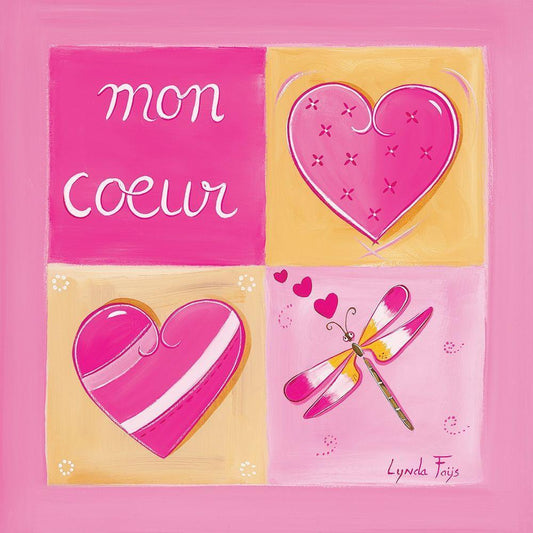 Mon cœur White Modern Wood Framed Art Print with Double Matting by Fays, Lynda