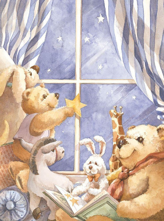 Teddy Bear Good Night II White Modern Wood Framed Art Print with Double Matting by Unknown