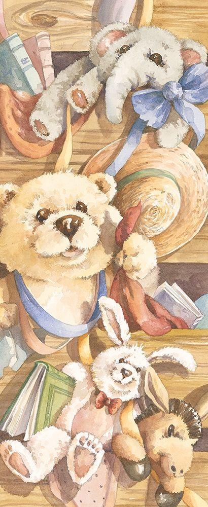 Teddy Bear Panel I White Modern Wood Framed Art Print with Double Matting by Unknown
