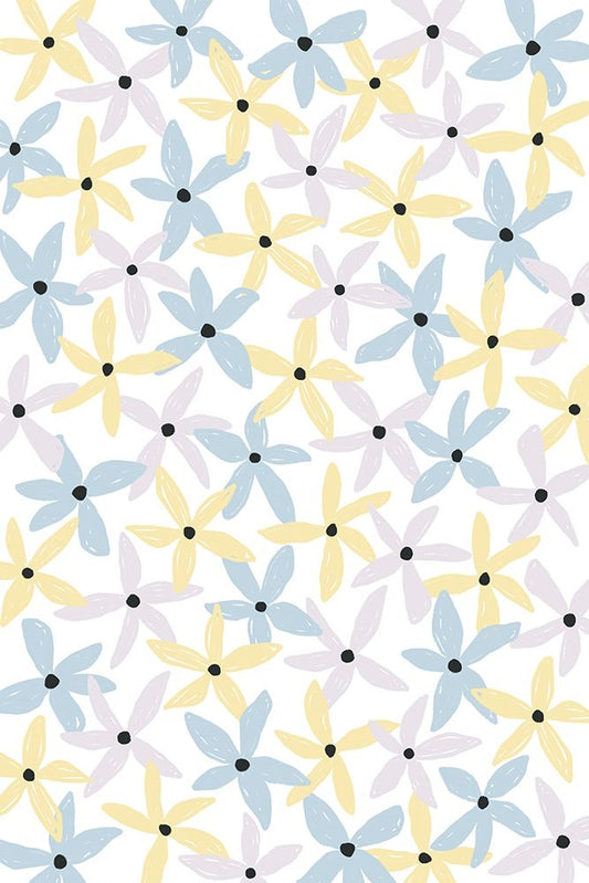 Playful Flowers White Modern Wood Framed Art Print with Double Matting by Uplusmestudio