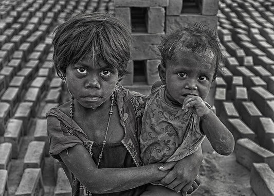 Siblings White Modern Wood Framed Art Print with Double Matting by Das, Mousumi