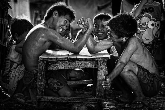 Young Eyes From Myanmar White Modern Wood Framed Art Print with Double Matting by Tagliarino, Marco
