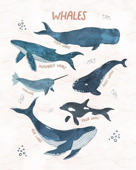 Whales of the World Black Ornate Wood Framed Art Print with Double Matting by Blue, Nina